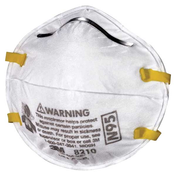 The lightweight, disposable N95 particulate respirator is designed to help provide quality, reliable worker respiratory protection. 3M uses a variety of innovative technologies and features to help you meet your respiratory protection and comfort needs. The respirator incorporates 3M`s proprietary technology with advanced electrostatically charged microfiber filter media, designed for ease of breathing. It`s adjustable nose clip and cushioning nose foam help provide a custom fit with secure seal and reduces potential for eyewear fogging. These features, along with the braided headbands and lightweight construction promote greater worker acceptance and may help increase wear time. N95 approved filtering facepiece particulate respirator Braided headbands with two-strap design and staple free dual point attachment help provide a comfortable and secure fit. Adjustable nose clip reduces potential for eyewear fogging and helps ensure a secure seal and fit. Compatible with a variety of protective eyewear and hearing protection Suggested applications: Grinding, Sanding, Sweeping, Bagging and other dusty operations. Can also be used to help reduce inhalation of certain airborne biological particles like mold, Bacillus anthracis, Mycobacterium tuberculosis, etc. Example applications include emergency or pandemic preparedness planning, stockpiling, etc.