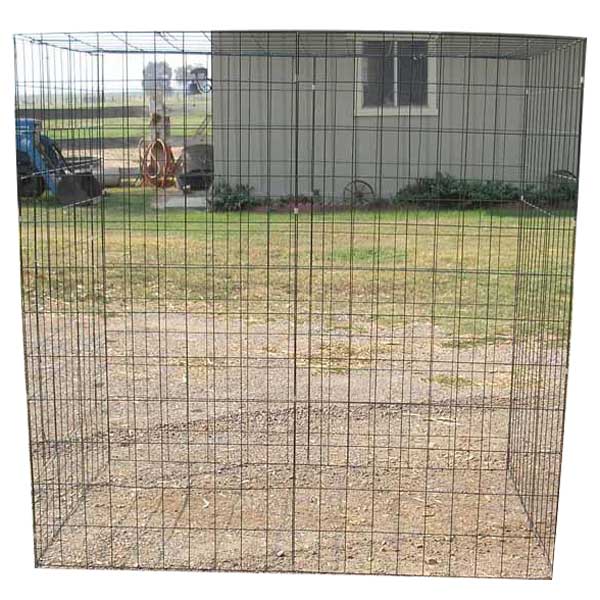 Safe temporary enclosure for chickens and other small animals, that is made of galvanized wire.