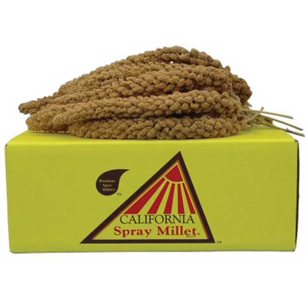 Spray millet bird treats from California Golden are made from sprigs of millet, a cereal grain that birds love to munch on.