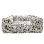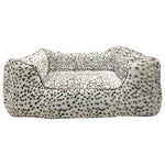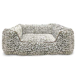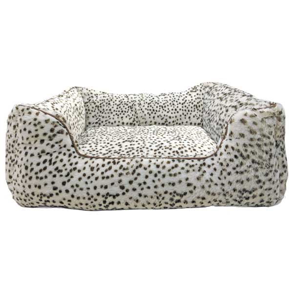 Soft plush leopard design. Easy step in with high walls for comfort and security. Made with 100% recyclable fill and machine washable.
