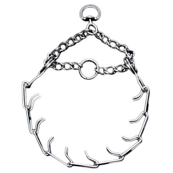 The Titan Chain Training Prong Collar is argon welded and chrome plated for maximum strength and durability. It will not tarnish, rust or break. Featuring a link closure style, prong links unfasten for easy collar placement and removal. Extra links and vinyl comfort tips are available. Available in 2.0 mm x 14", 3.0mm x 18", 3.3 mm x 20" and 4.0 mm x 22". Chain training prong collars are safe, effective training tools with proper use. They are not to be used for tie out.