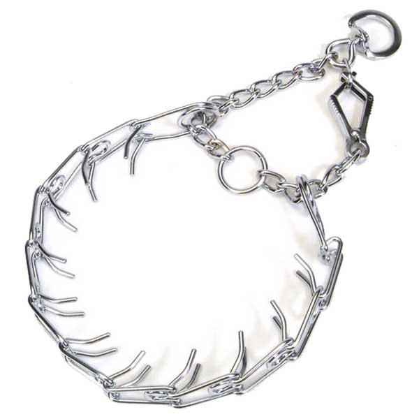 The Titan® Chain Dog Prong Training Collar with One-Handed Quick Release Snap is argon welded and chrome plated for maximum strength and durability. It will not tarnish, rust or break. There is no need to fasten or unfasten links to remove the training collar from your dog. Extra links and vinyl comfort tips are available for this training collar. Available in Fine 2.0 mm x 14". medium 3.0 mm x 18", heavy 3.3 mm x 20" and x-heavy 4.0 mm x 22". Chain training collars are safe, effective training tools with proper use. They are not to be used for tie out.