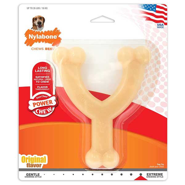 No need to break this wishbone apart… when your toy gives this many hours of chewy fun, your wish has already been answered! Nylabone DuraChew Wishbone Dog Toys are fun shaped chew toys that satisfy your pup's natural desire to gnaw the day away. Nylon bristles formed while chewing work like dental floss and help clean the teeth and gums.