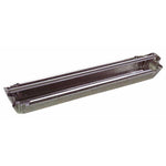Free-spinning reel on top makes it difficult (if not impossible) for chickens and other birds to roost on this feeder. Snap-in reel makes filling and cleaning easy. Curved lip on both sides helps reduce feed waste. Made of heavy-gauge galvanized steel for years of service, with rolled edges for safety. Measures 18.5 inch long by 4 inch wide by 2.5 inch high.