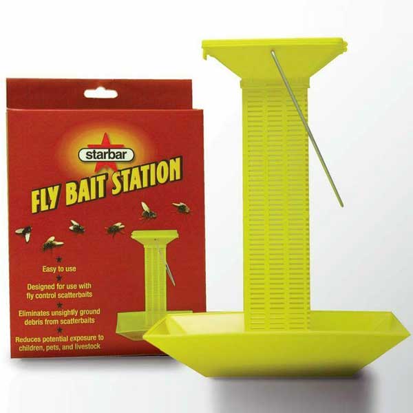 Holds 2 oz. of fly control scatter bait and includes built-in tray to catch dead flies at the low level.