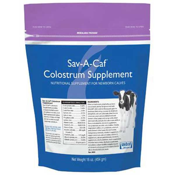 Sav-A-Caf Calf Colostrum Supplement is designed to provide your newborn with needed colostrum antibodies when maternal colostrum is in short supply. Specifically formulated with globulin protein from bovine colostrum and added vitamins and minerals. Easy mixing formula for newborn calves.
