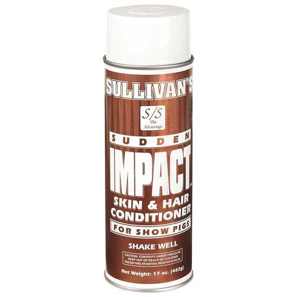 Dosage & Administration: Shake well before each use. Use at home by spraying over entire body and brush or rub in with hands. Extremely dry skin may require washing out with soap. For show preparation, 30 minutes prior to showing, spray evenly over entire body, brush deep into hair and skin then mist lightly with water to achieve a great shine. Will not leave skin feeling and looking greasy. Sudden Impact is an oil base product.