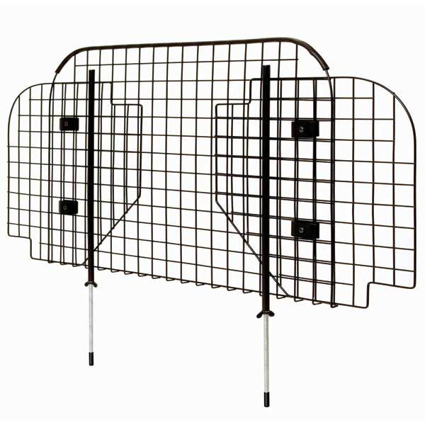 Keep your pets safe in the rear of your SUV, minivan, or wagon with the Pet Lodge Two-Way Adjustable Auto Barrier. Wire mesh provides security while allowing pets to see and hear people in the car. The uniquely designed panels adjust both vertically and horizontally to securely fit the vehicle, Quick and easy to install, with no tools required. Side-to-side adjustment goes from 39.375 inch to 79 inch wide; top-to-bottom adjustment goes from 32.5 inch to 52 inch tall. Made of heavy-duty metal wire, with rounded corners for safety and black e-coating for corrosion resistance.