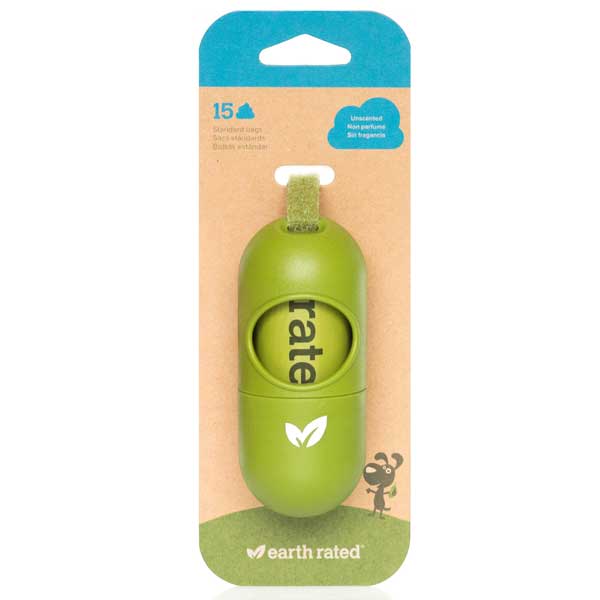 This dispenser is a convenient holder for our Earth Rated® bags and also fits all standard-sized rolls. The adjustable strap allows it to attach to any size leash, while the screw-on dispenser top keeps bags secured (not dropped or lost!). Our unique hook on the back of the dispenser is a great feature that holds the used bag for hands-free bag transport. Includes one (1) unscented starter roll of 15 bags.