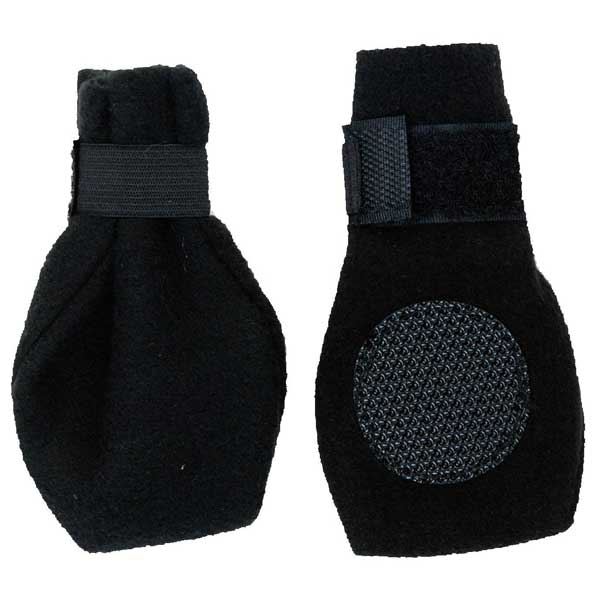 A soft fleece boot that helps to protect paws from hot pavement, salt and injury. The boot is also great for indoor use to prevent slipping or scratch marks on hardwood floors. Made of 100% polyester polar fleece the boot has an elastic strap for easy on/off and a non-skid PVC sole.