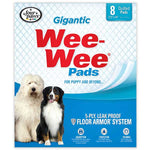 Wee-Wee Pads in Gigantic size are 140% larger and more absorbent than the average housebreaking pad. Perfect for BIG dogs and multi-dog households! Made with a 5-ply leak proof Floor Armor System, the special quilted top locks in moisture while the leak proof liner protects floors and carpets. Treated to attract dogs to the pad when nature calls, Gigantic Wee-Wee Pads measure 27.5” x 44” and come in 2 package sizes.