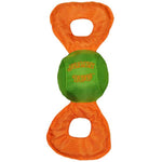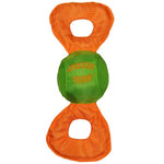 Designed with a patented squeaking assembly. This toy squeaks when both ends are tugged simultaneously. Perfect for interactive play between owner and dog or multi use