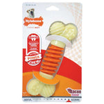 Trip to the doggie dentist? No thanks! Bacon Flavored PRO Action Dental Chew from Nylabone? Now you're barking' your pup's favorite language! The PRO Action Chew is a bacon flavored bone made for powerful chewers. Raised nubs and spirals in the bone allow the teeth to sink in, removing plaque and tartar and stimulating the gums. Recommended by vets for healthy mouths and fresh breath!