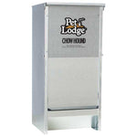 You and your dog never had it so easy! Safely store dry dog food and feed it from the same chew-proof container. The Chow Hound Automatic Dog Feeder is manufactured from tough galvanized steel for durability and rust resistance. The magnetized door stays shut until your dog nudges it open, keeping unwanted pests out. A specially angled chute provides a steady food flow on demand. Food stays fresh, dry, and pest free. Can be mounted on a wall or frame (not included). Comes fully assembled. 8 inch long by 9 inch wide by 19.25 inch high, holds 12 pounds of dry dog food.