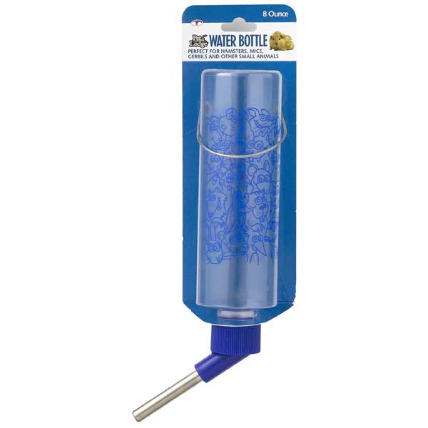 Clear plastic makes it easy to view water level. Features stainless-steel ballpoint tube and no-leak seal design to keep your pet's water clean and housing dry. Includes metal hanger for attaching to wire hutch, fence, or aquarium. Perfect for hamsters, mice, gerbils, and other small animals and reptiles. 2 inch-diameter bottle holds 8 ounces (1/2 pint).