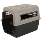 Perfect for housebreaking, the Petmate Ultra Vari Kennel 28" is ideal for training and traveling. Features include tough durable construction with an easy-open squeeze latch, wire vents on side walls, an interior moat to keep pets dry, and tie-down strap holes on the perimeter for zip-tie installation and extra security during airline travel. Provides 360-degree ventilation so your pet gets plenty of airflow. Heavy duty plastic shell provides durability and safety for your pet. The Petmate Ultra Vari Kennel is easy-to-assemble with no tools required. Meets most air travel requirements. Please contact your specific airline before traveling for verification of their requirements. Plastic made in the USA, other components imported. Handle not included.