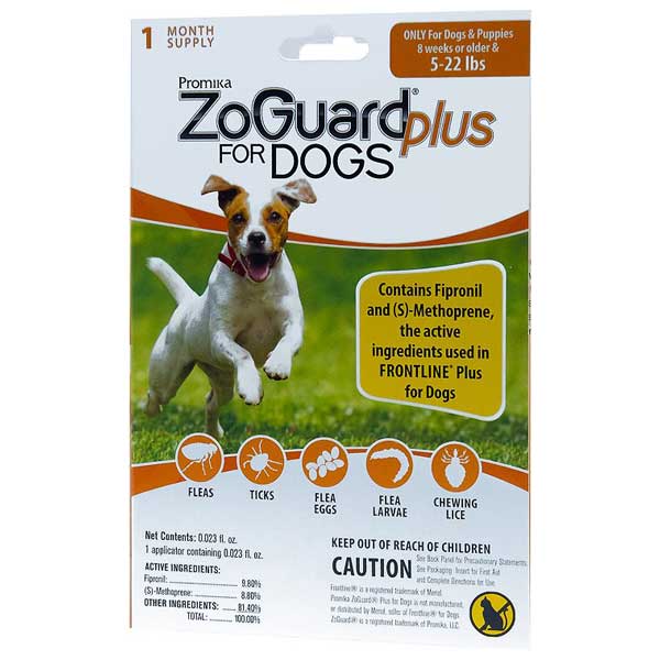 ZoGuard® Plus for Dogs, comparable to Frontline Plus contains the same active ingredients and offers the same level of flea and tick protection at a better value. ZoGuard Plus for Dogs is effective against all life stages of the flea, effectively breaking the life cycle and controlling re-infestations. Each package includes 3-monthly doses providing 12 weeks of protection. ZoGuard Plus for Dogs is waterproof and will remain effective even after bathing, water immersion, or exposure to sunlight.