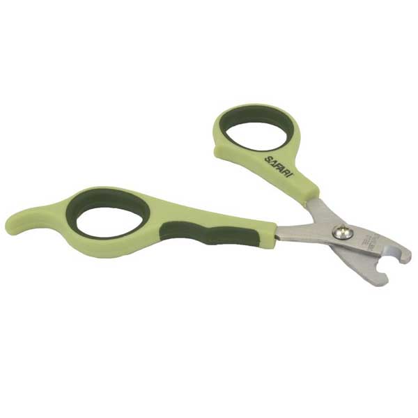 Get a secure, comfortable grip while grooming with the Safari® Cat Deluxe Nail Trimmer! This nail trimmer is designed to accommodate all hand sizes for easy grooming. Its large finger hole, over-molded handle and non-slip finger rest ensure a secure grip. The stainless steel cutters provide a sharp cutting edge for long-lasting use. These trimmers are easy to use: Hold your cat's paw firmly, then trim the tip of the nail with a single stroke. Trim every 7-10 days until your cat's nails are the desired length, then trim on a monthly basis. Use these trimmers for no-fuss, comfortable nail trimming!