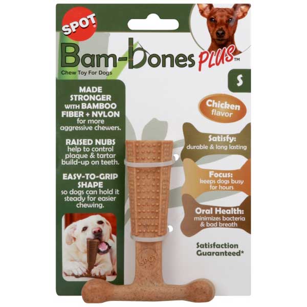 Made of strong bamboo fibers combined with nylon for a stronger, longer lasting chew. Raised nubs massage teeth and gums for a healthy mouth. Easy to grip shape so dogs can hold it steady.