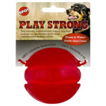 The Play Strong Rubber toys are super durable rubber which is virtually indestructible. There is a hollow center which is perfect for treats or peanut butter. This new toy is perfect for aggressive chewers.