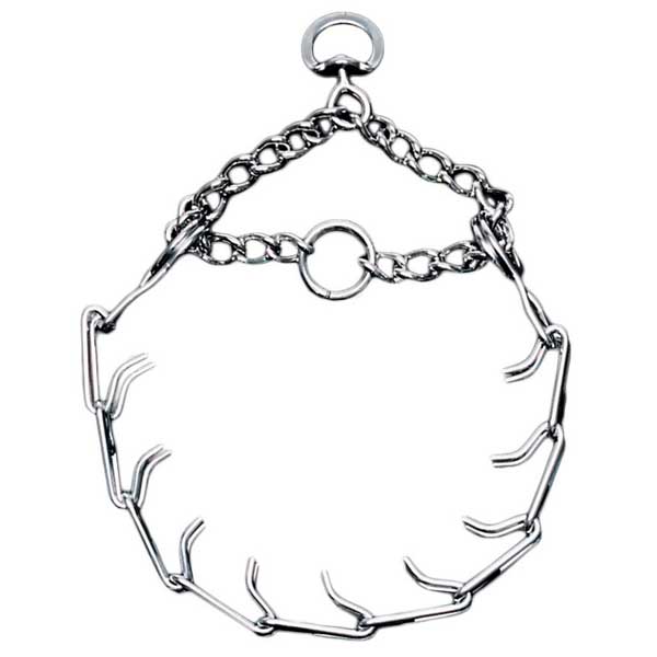 The Titan Chain Training Prong Collar is argon welded and chrome plated for maximum strength and durability. It will not tarnish, rust or break. Featuring a link closure style, prong links unfasten for easy collar placement and removal. Extra links and vinyl comfort tips are available. Available in 2.0 mm x 14", 3.0mm x 18", 3.3 mm x 20" and 4.0 mm x 22". Chain training prong collars are safe, effective training tools with proper use. They are not to be used for tie out.