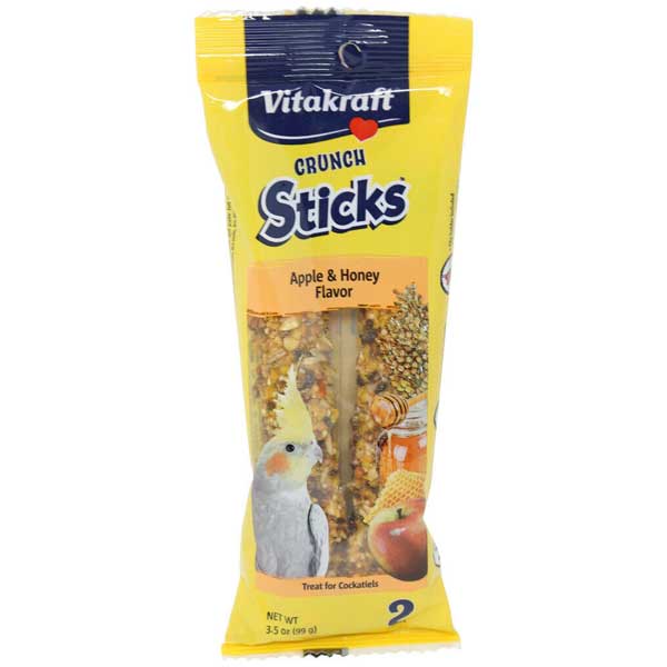 Crunchy, long-lasting baked treat stick made with real apple & honey. Crunch Sticks don't just taste good: they also help support your bird's beak health and provide important stimulation to prevent boredom. The triple-baked layers make this treat last longer, with a natural wood chew center that provides hours of chewing fun long after the treat part is gone!