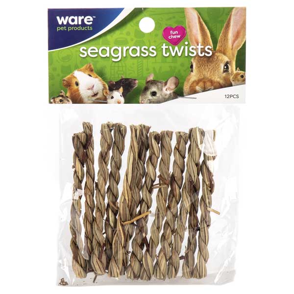 Seagrass Twists are a savory snack made from sundried seagrass, offering a wholesome combination of crunchy chew and flavoring for rabbits, guinea pigs, pet rats and hamsters.