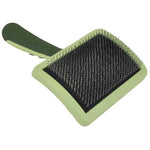 Make grooming easier with the Safari® Curved Firm Slicker Dog Brush! Whether your dog has a thin, medium or thick coat, this brush helps maintain a beautiful coat on dogs of all types. Its coated tips gently and comfortably remove tangles and loose hair. You can effectively brush every inch of your dog thanks to the slicker's curved design that contours to your dog. Grooming is easy thanks to the non-slip handle. Use long, gentle strokes being careful to avoid removing excess undercoat. Breeds with thicker coats need to be groomed more frequently, while short-haired breeds only need weekly grooming. Use this brush in your grooming routine to maintain your dog's beautiful coat!