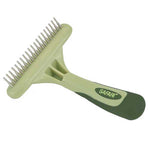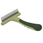 Prevent your dog's undercoat from matting with the Safari® Dog Undercoat Rakes! The single row undercoat rake keeps long-haired dogs' coats healthy and beautiful with precision tapered pins that penetrate deeply into the coat. For dogs with extra thick, heavy coats, the double-row rake features dual-length pins for maximum performance. Your dog won't fuss during grooming thanks to the gentle but effective rounded rotating pins. The single row dog rake with rotating pins works well on breeds with medium undercoats, while the double row option is best for breeds with dense undercoats. Add this to your grooming routine to maintain your dog's beautiful coat!