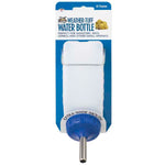 Weather-resistant, ultraviolet-resistant polyethylene plastic makes this bottle ideal for outdoor use, but it works equally well indoors. Stainless-steel ballpoint tube keeps your pet's water clean and housing dry. Extra-wide mouth accommodates ice cubes for keeping pet's water cool in hot weather. Includes metal hanger for attaching to wire hutch, fence, or aquarium. Perfect for hamsters, mice, gerbils, and other small animals and reptiles. 3 inch long by 2.25 inch wide by 6.75 inch high, holds 8 ounces (1/2 pint).