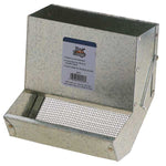 Rabbits and other small animals will not eat the fines (powdery residue) that collect in pelleted or grain feeds. If left in the feeder, these can attract harmful molds. This rabbit and small animal feeder has a wire mesh bottom that sifts fines out so they fall into the litter below. Includes independent wire hooks so the feeder can be attached to the inside of the hutch, or for more convenient filling to the outside with some wire cutting. Gravity design allows feeder to dispense several days worth of feed a little at a time. Made of chew-proof, rust-resistant, heavy-gauge galvanized steel. Measures 5.5 inch long by 3.125 inch wide by 7.125 inch high.
