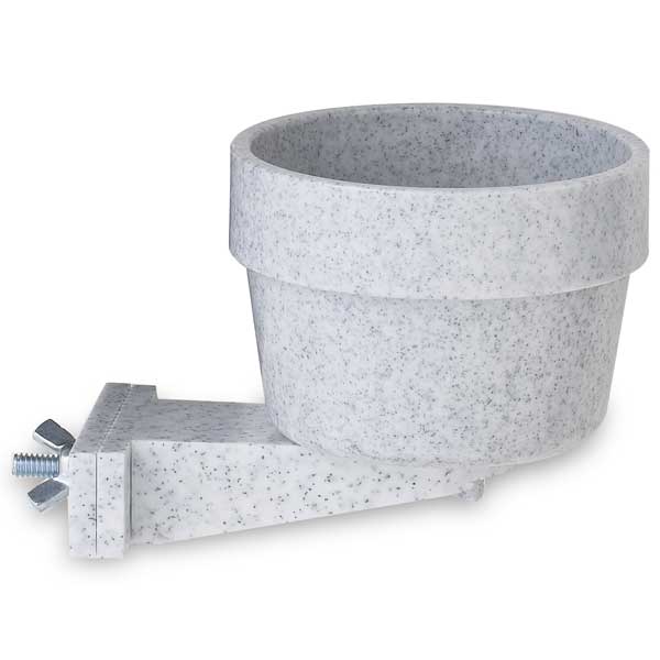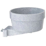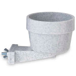 Keep your hutch clean and dry with a bowl that is off the ground and can't tip over. It's the perfect solution to spilled food or water. The Quick-Lock Cage Crock features a snap-in bracket that will fit any wire hutch. Easily attaches to either horizontal or vertical wire with no tools required. Twist-and-release lock detaches the bowl from the bracket for easy filling and cleaning. Granite-colored, chew-resistant bowl is dishwasher safe and can be used indoors or outdoors. Perfect for wire hutches, pet carriers, holding pens, display cages, kennels, and fenced-in yards. Works great for rabbits, hamsters, guinea pigs, small dogs, cats, birds, and other small animals. 3.75 inch diameter by 3.75 inch high, holds 10 ounces.