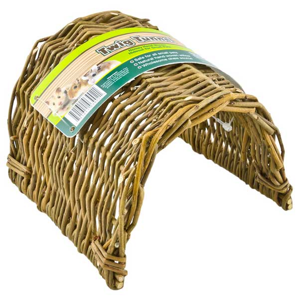 The all new edible Twig Tunnels for small pets are made from a renewable source. These hand woven willow hide-outs provide the perfect spot for napping and nibbling. It is a wholesome chew source for critters that gnaw such as guinea pigs, dwarf rabbits, ferrets and chinchillas.