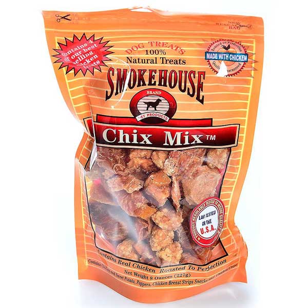 With Smokehouse Chix Mix™, your dog gets to enjoy a multitude of flavors all in one bag! We have four of our best selling chicken treats in the mix for those dogs who like a little variety. There's our Poppers™, Chicken and Sweet Potato, Chicken Breast Strip Snacks and to finish it off our Chicken Chips. What could be better than four great treats in one. It's a "Trail Mix" for your dog!